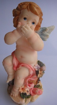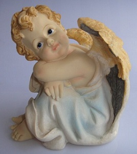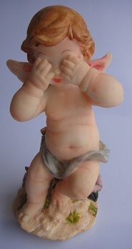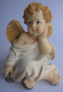 S317-ANJO SENTADO C/ A MÃO NO ROSTO 16CM